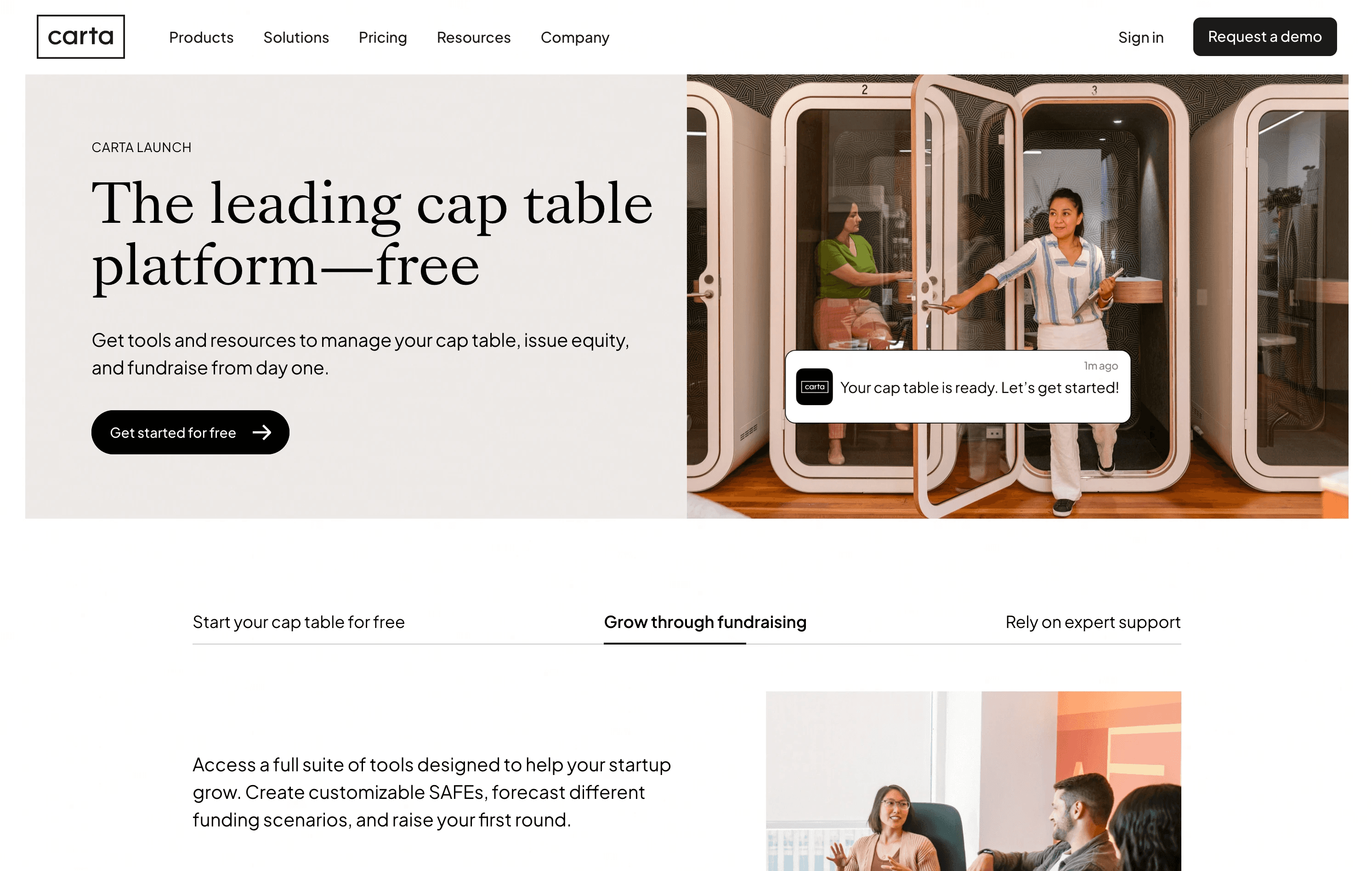 Carta Launch | Pre-seed founders already on Carta | Free (under 25 stakeholders / under $1M raised) | Cap table + data room in one platform |