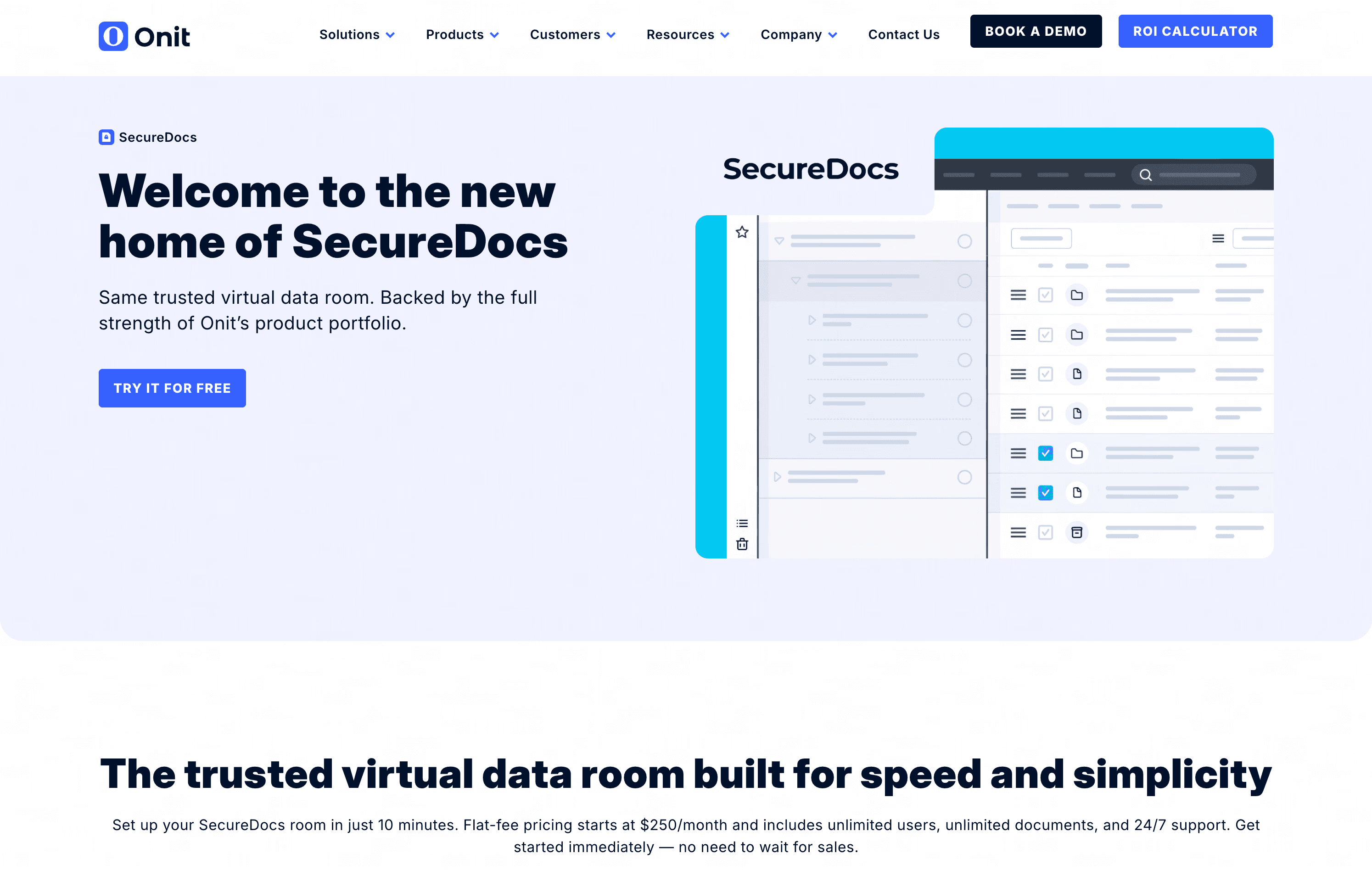 SecureDocs | Seed to Series A, quick setup | $250/month (flat-fee, unlimited users and storage) | 10-minute setup, flat pricing with no hidden fees |