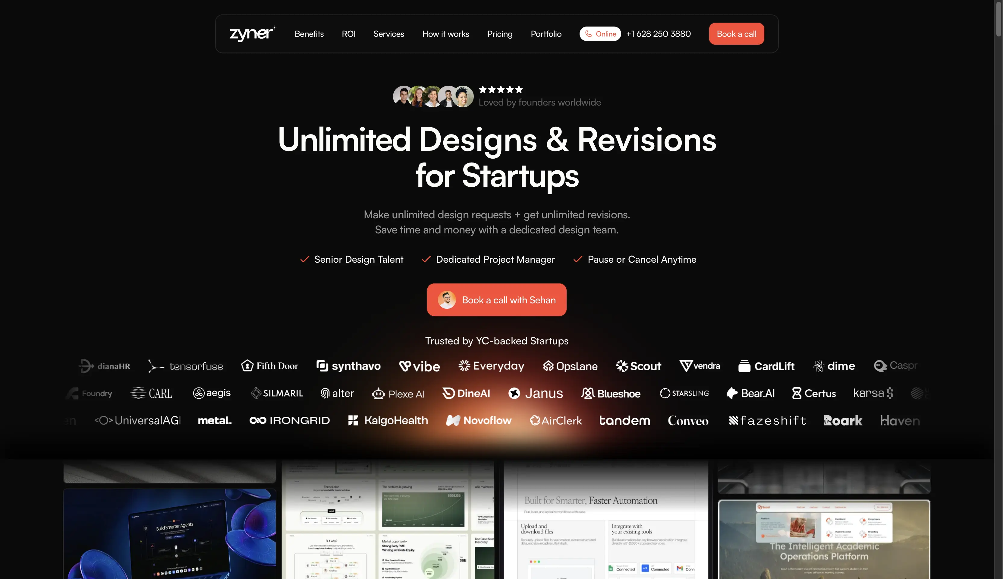Founders who switch to Zyner from in-house or freelance typically save $250,000 to $450,000 annually compared to maintaining a two to four person internal design team. Onboarding takes 24 to 48 hours, and the team begins shipping work within the first week.