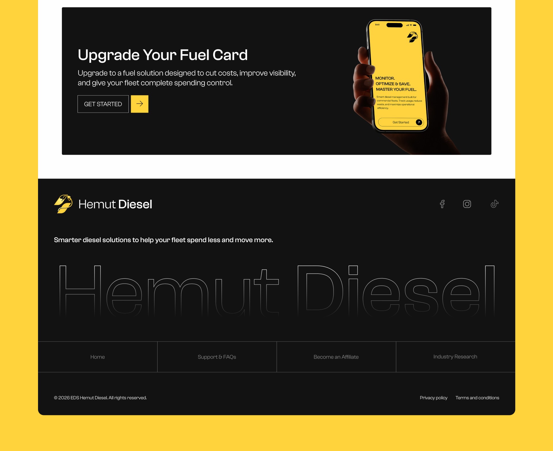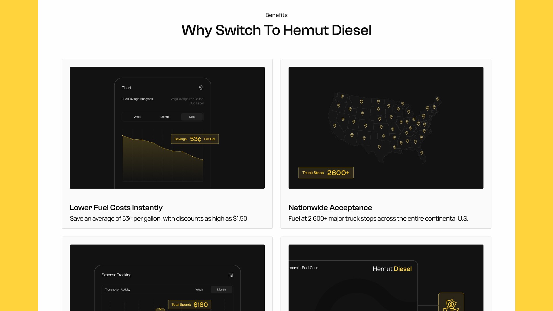 Designed a landing page for Hemut Diesel that helps small fleet owners and owner-operators understand how a commercial fuel card can cut their diesel costs by up to 53 cents per gallon.