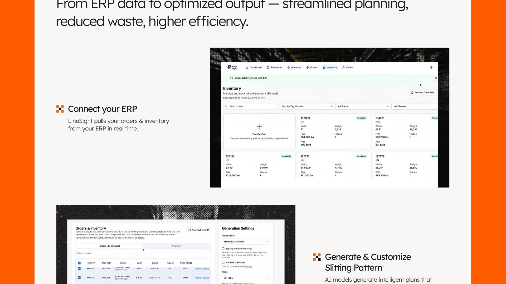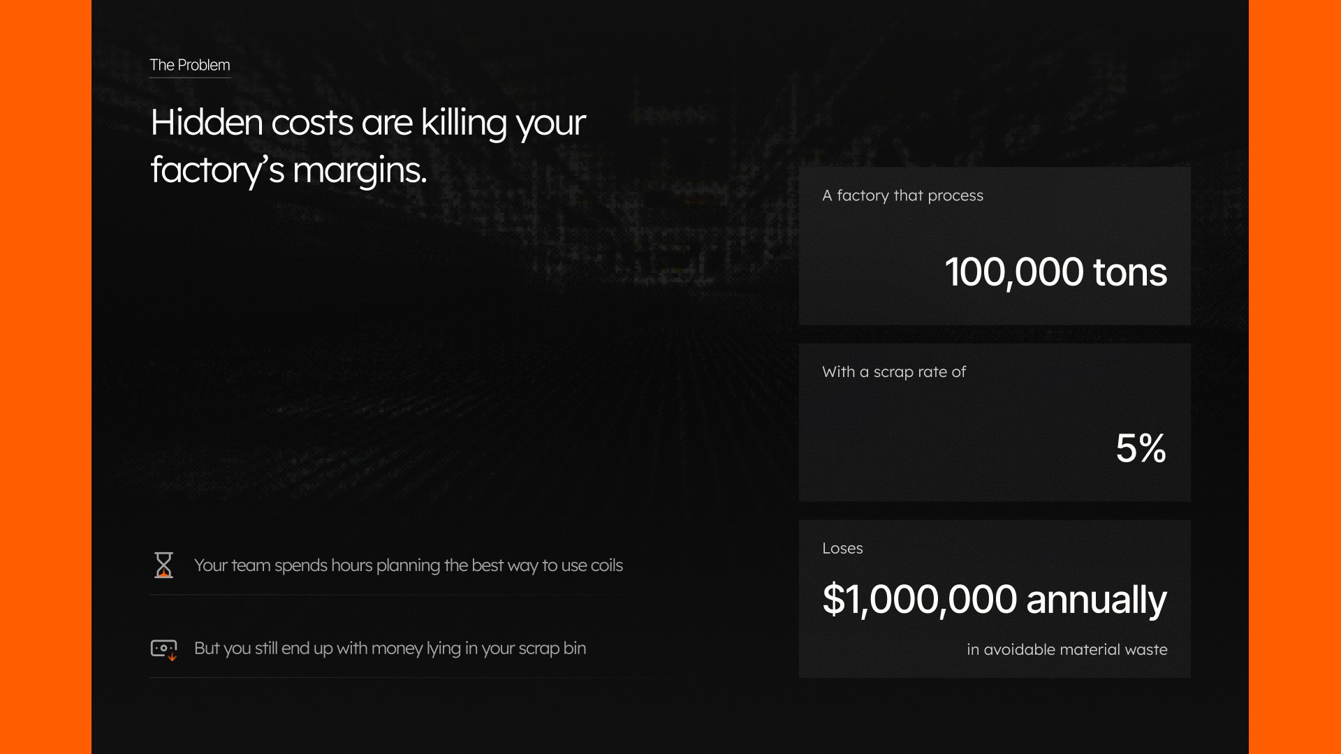 LineSight is an AI platform built specifically for metal service centers that process flat-rolled coil products. Their core problem is one that costs factories millions annually: planning teams spend hours manually figuring out how to cut coils, and still end up with avoidable scrap. LineSight solves this by generating optimized slitting schedules in minutes, accounting for order constraints, line constraints, and operational preferences specific to each facility.