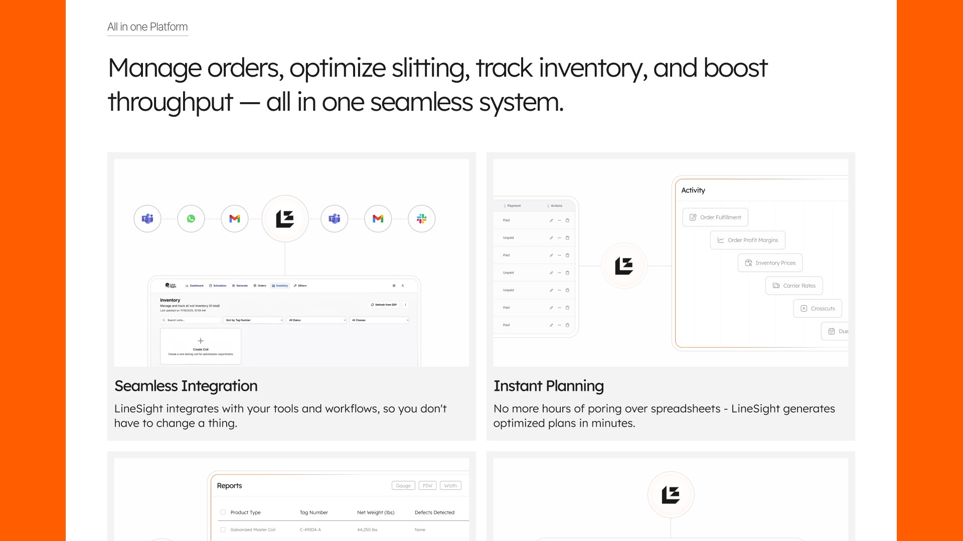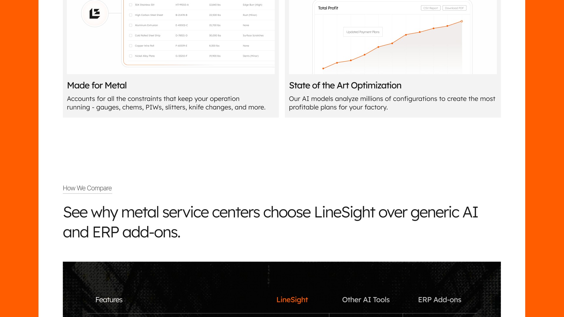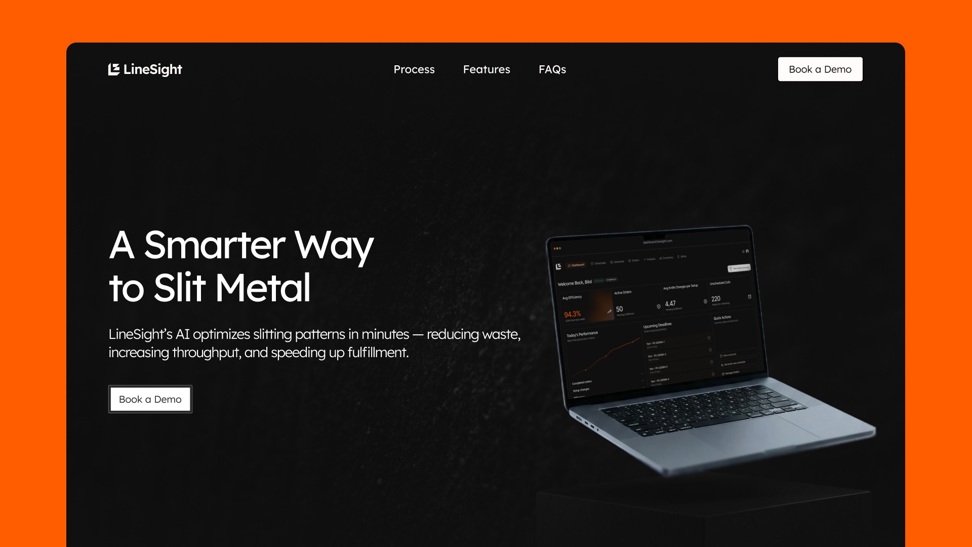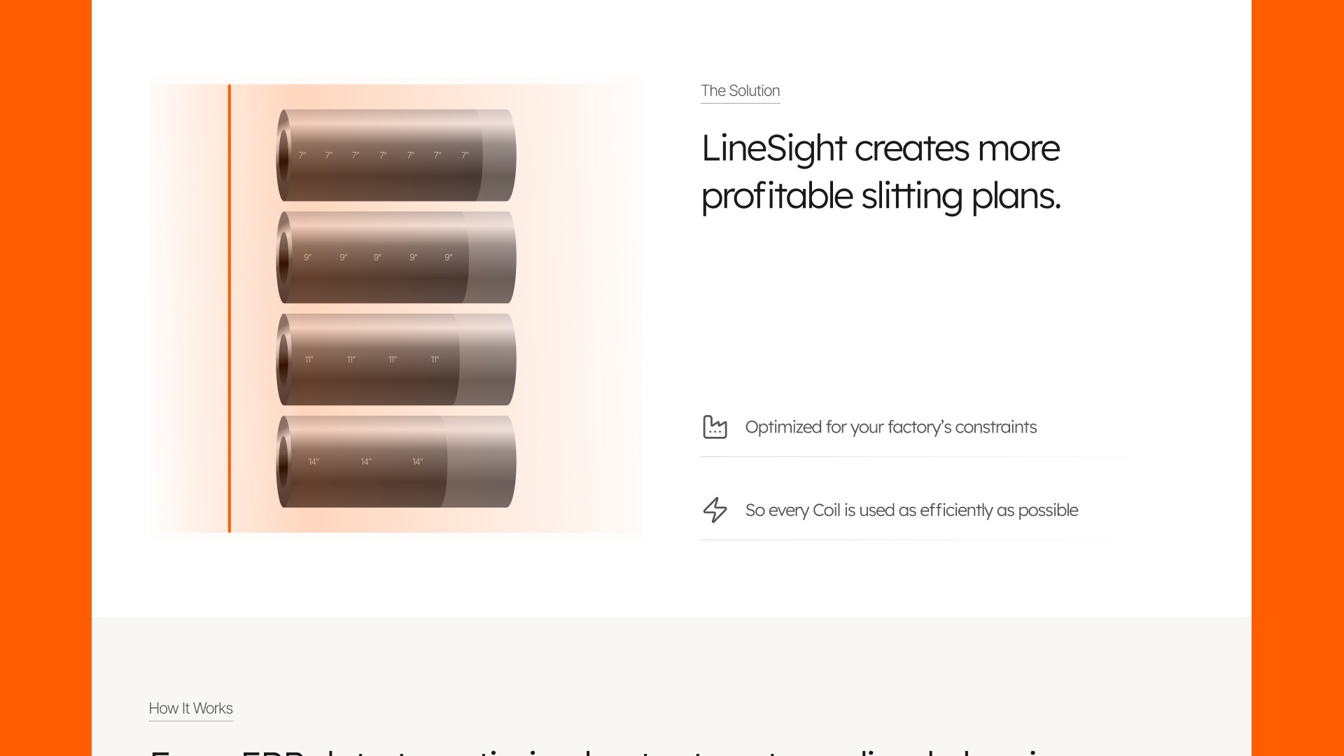 Designed a Landing Page for LineSight that communicates how their AI-powered slitting optimization platform helps metal service centers reduce material waste and increase revenue on every coil.
